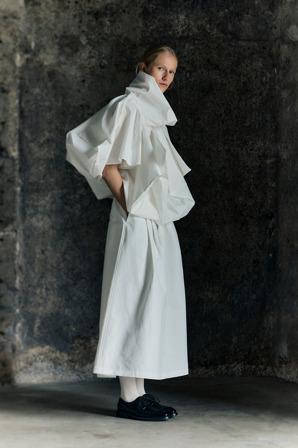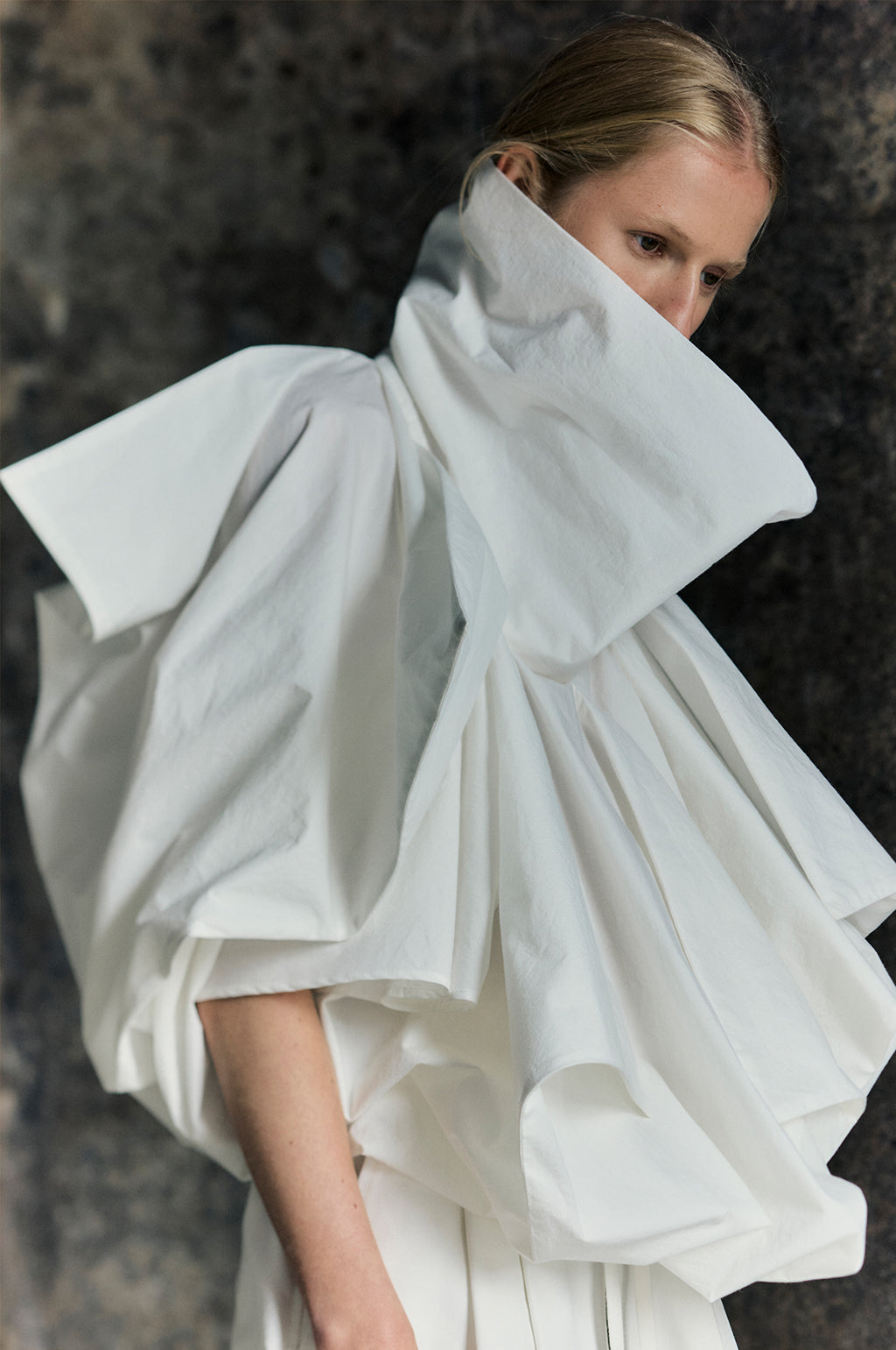 Ten ‘Pages’ fold around the body in a sculptural silhouette.