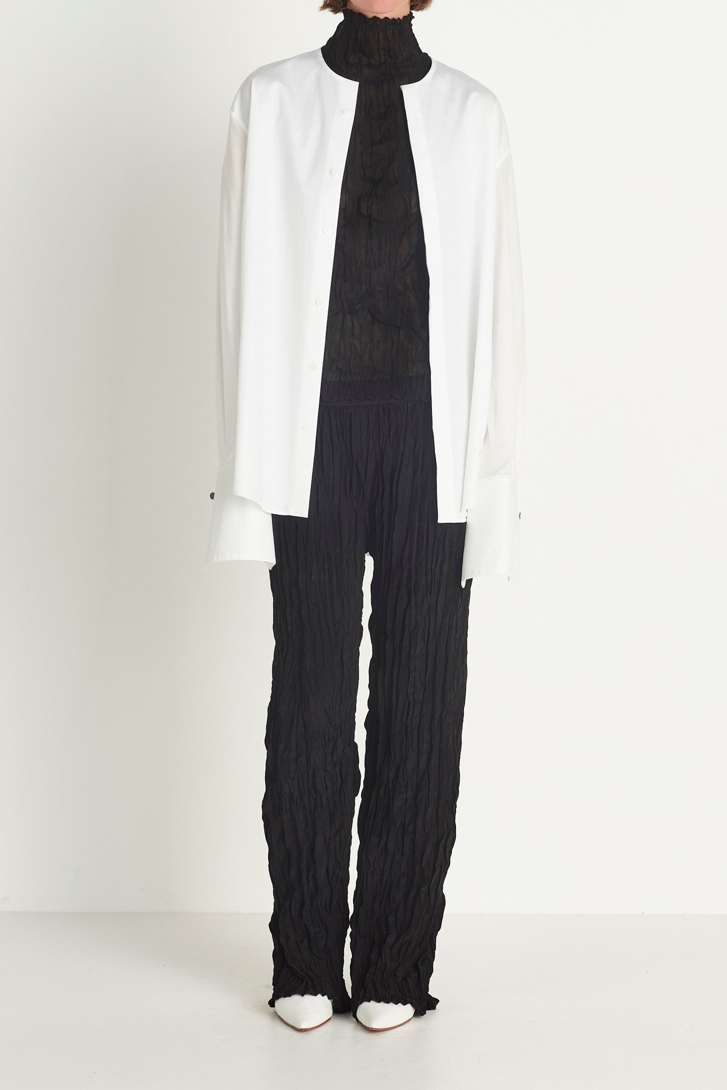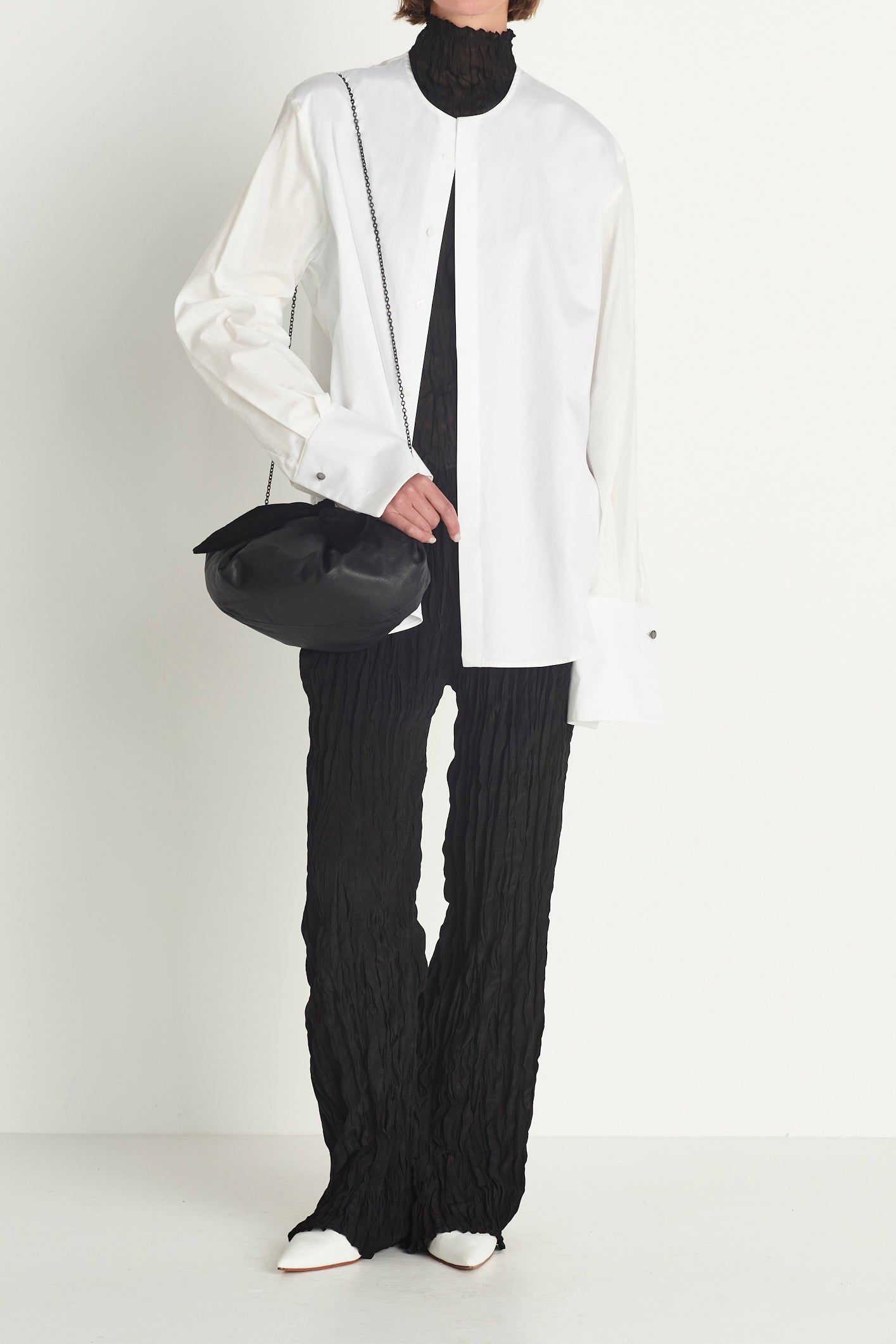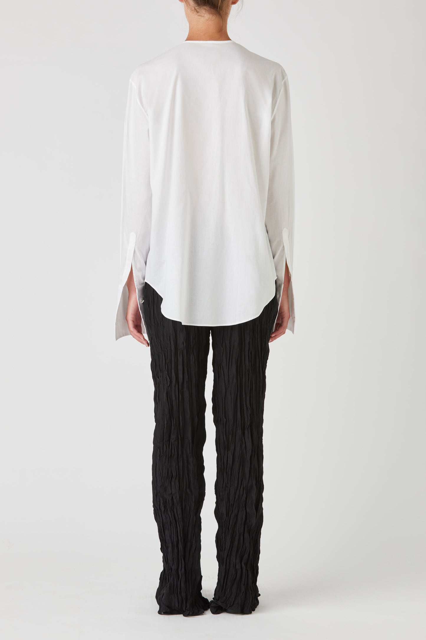 Genderless and gernerous fitting shirt with a concealed placket and deep french cuffs.