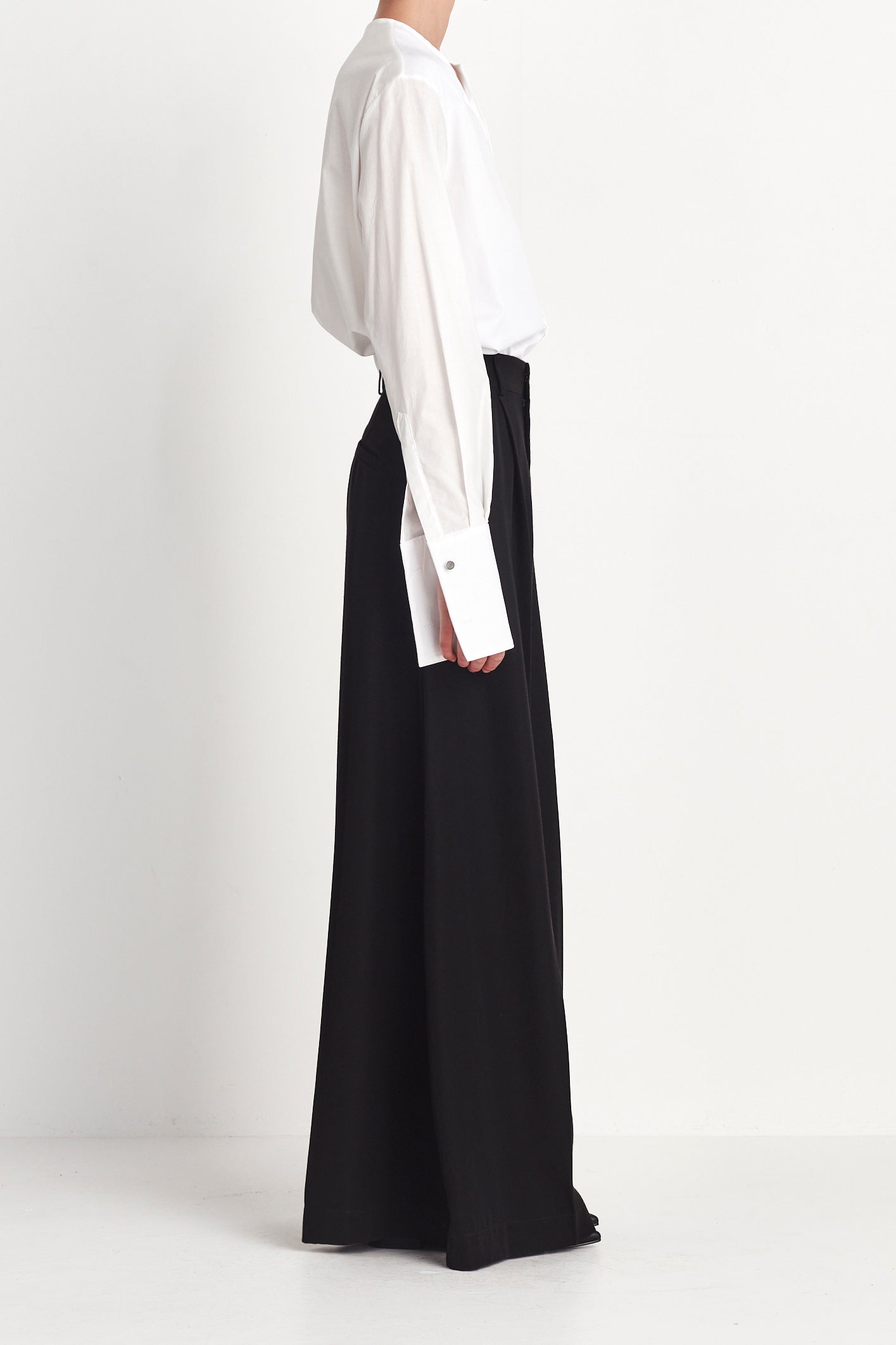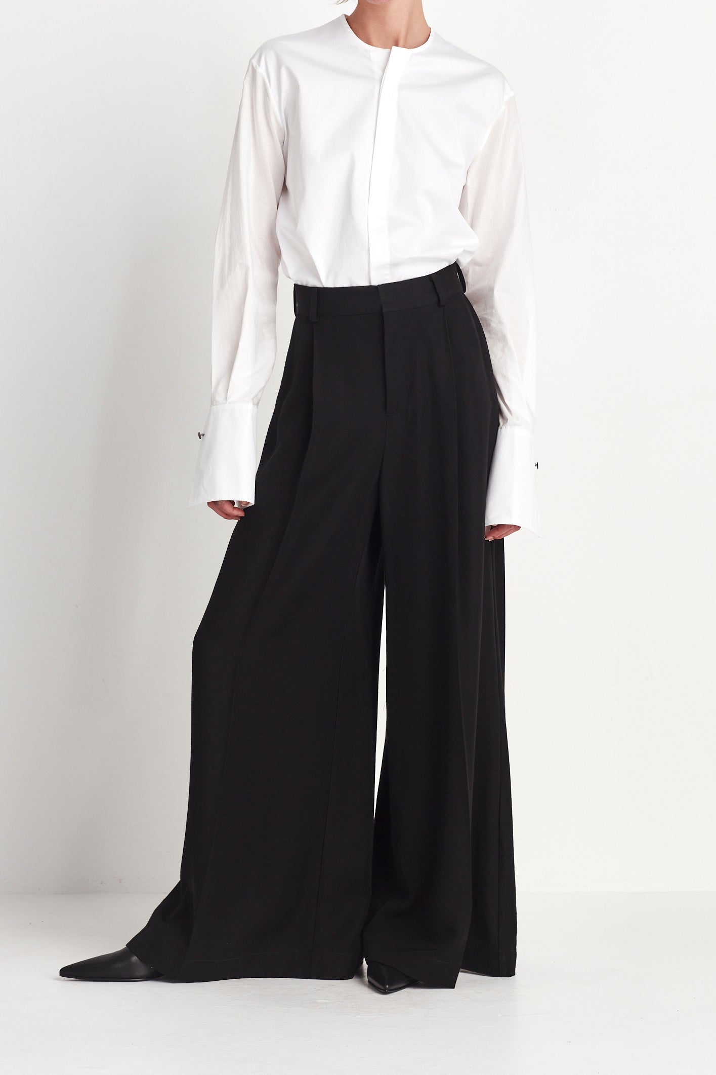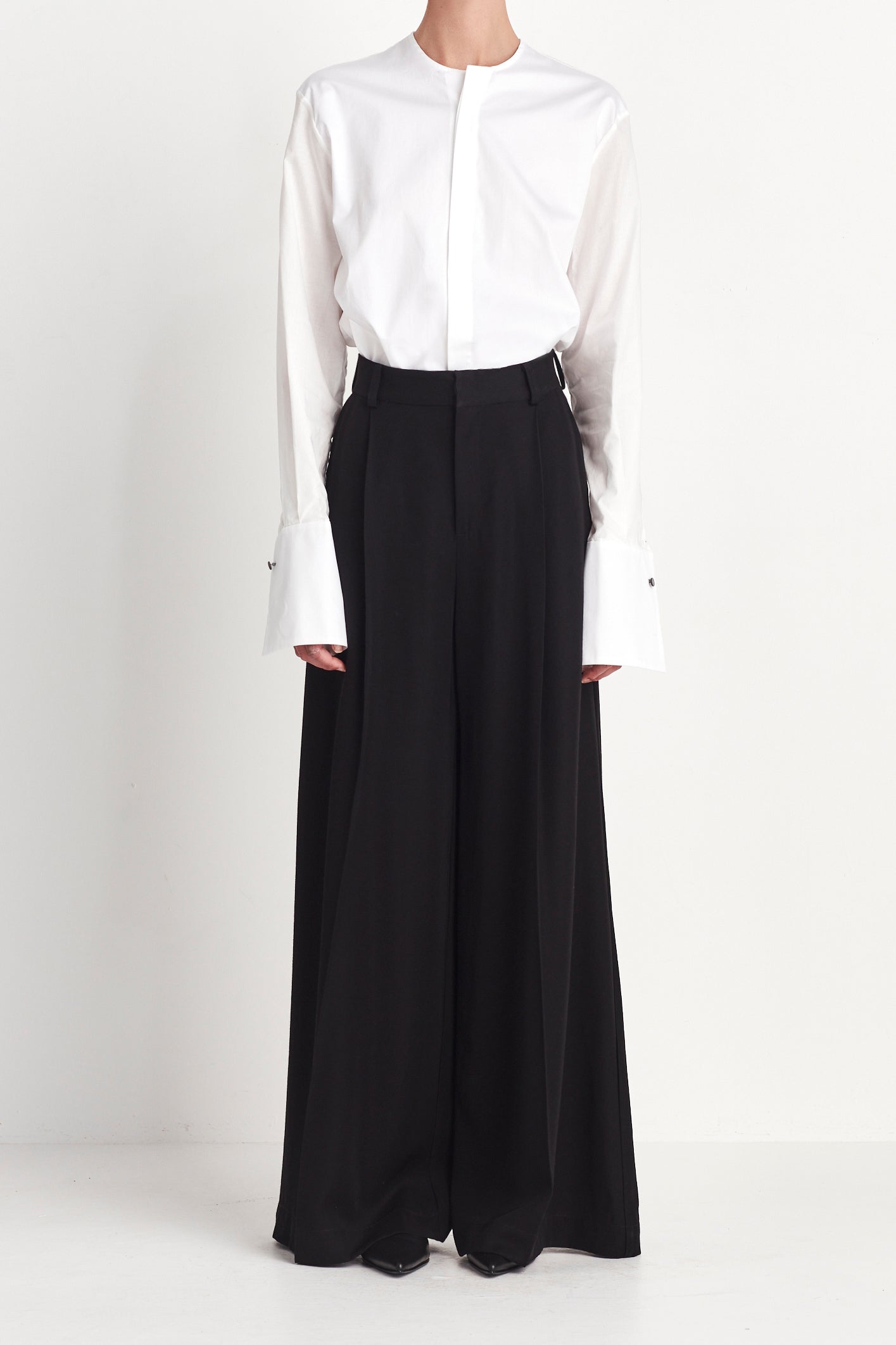 Genderless and gernerous fitting shirt with a concealed placket and deep french cuffs.