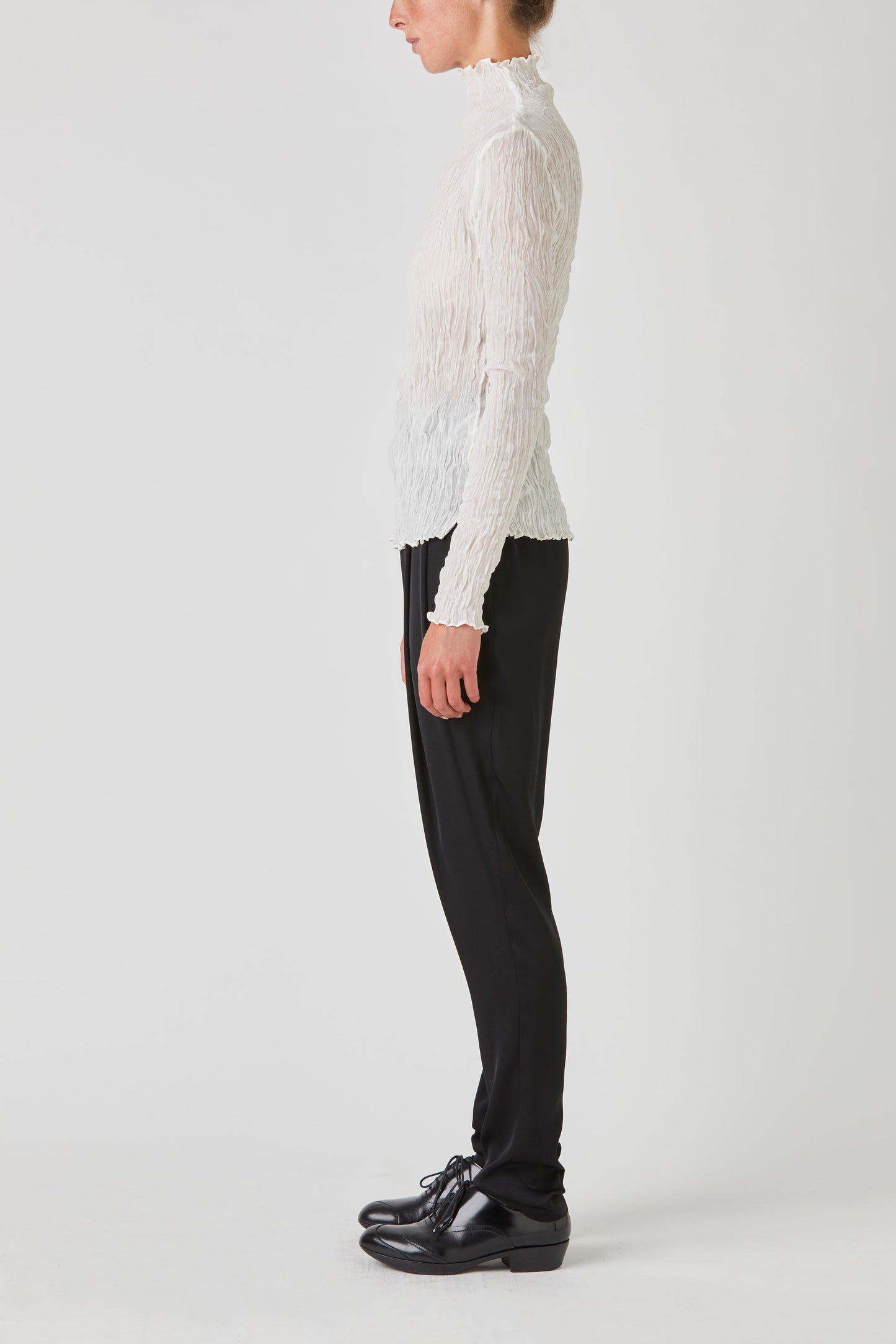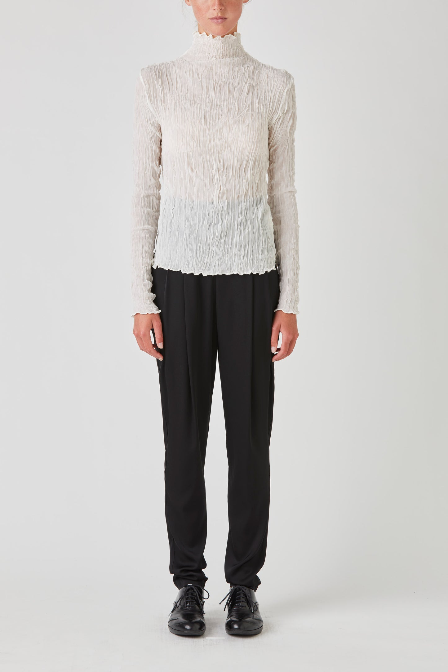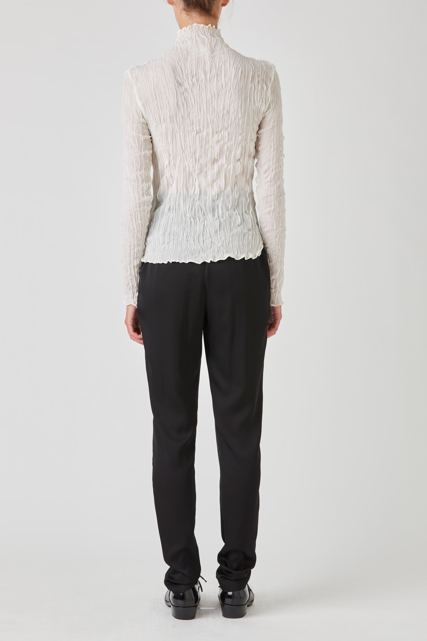 Crushed silk adds texture to this perennial style, now with long sleeves, ideal to layer.