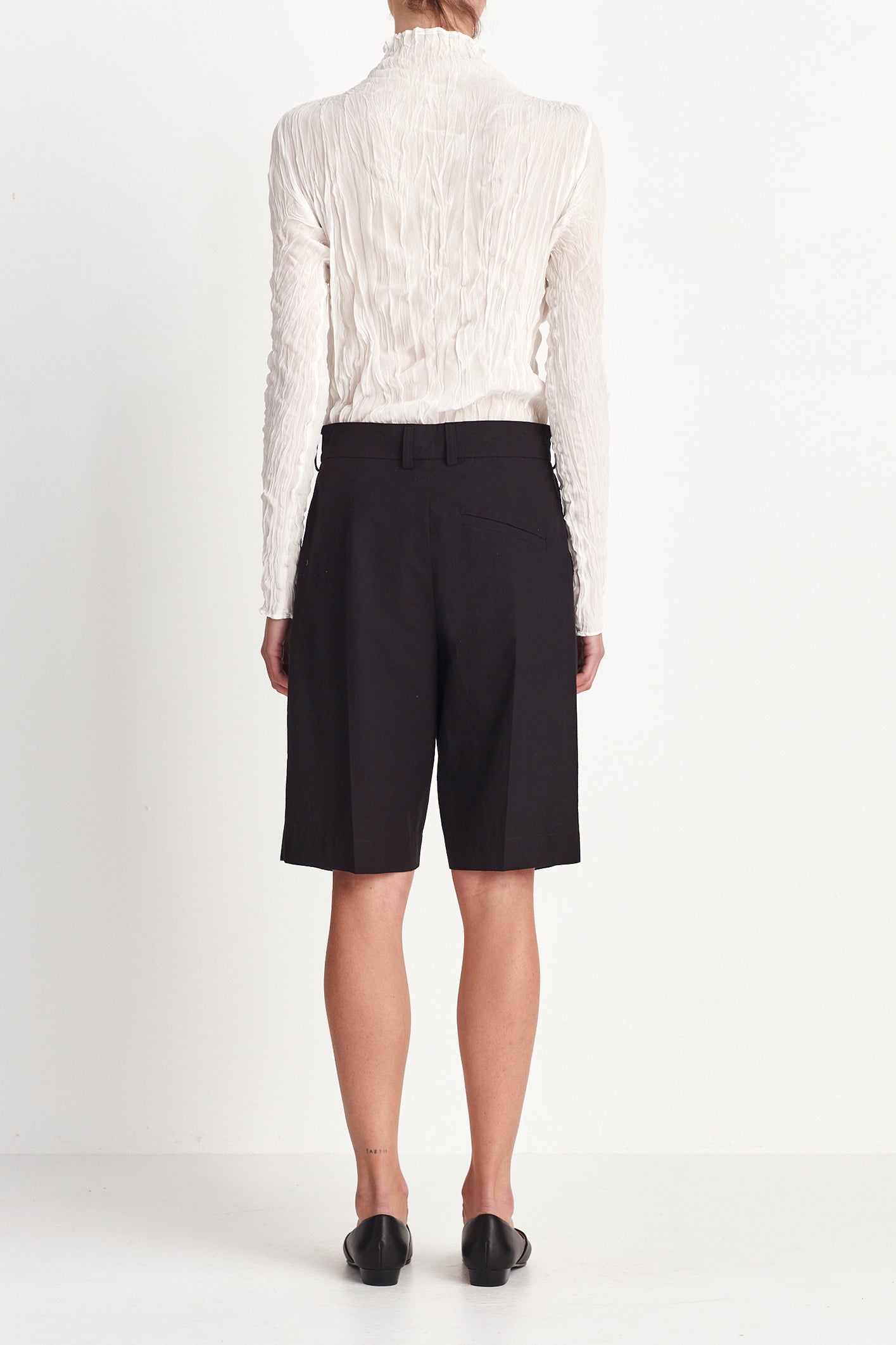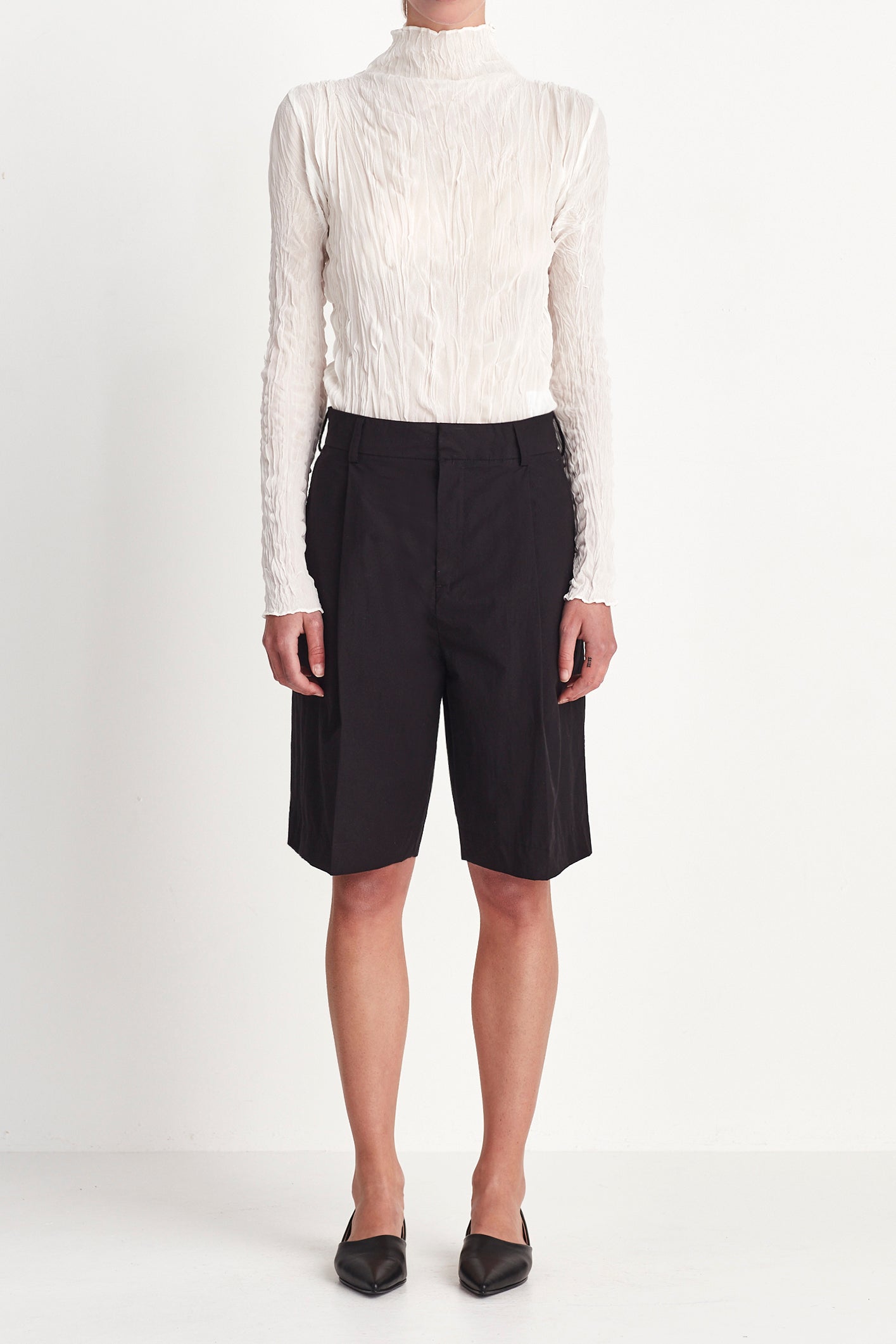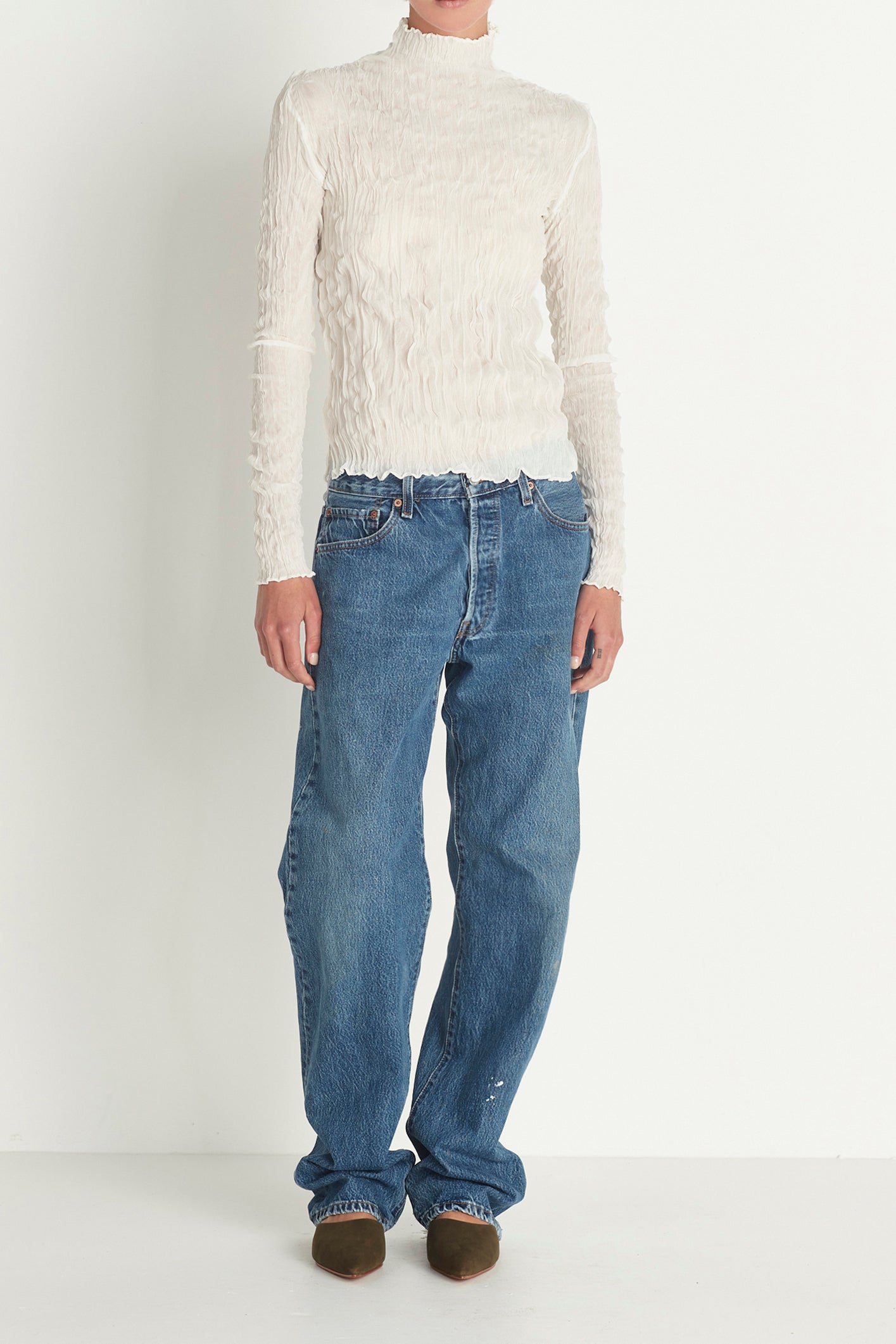Crushed silk adds texture to this perennial style, now with long sleeves, ideal to layer.