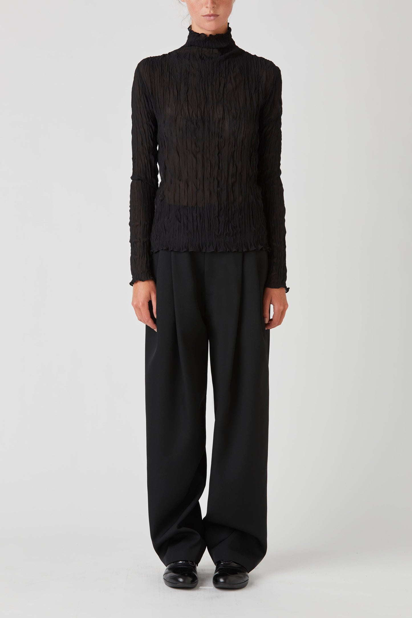 Crushed Long Sleeve Turtle Neck - Black
