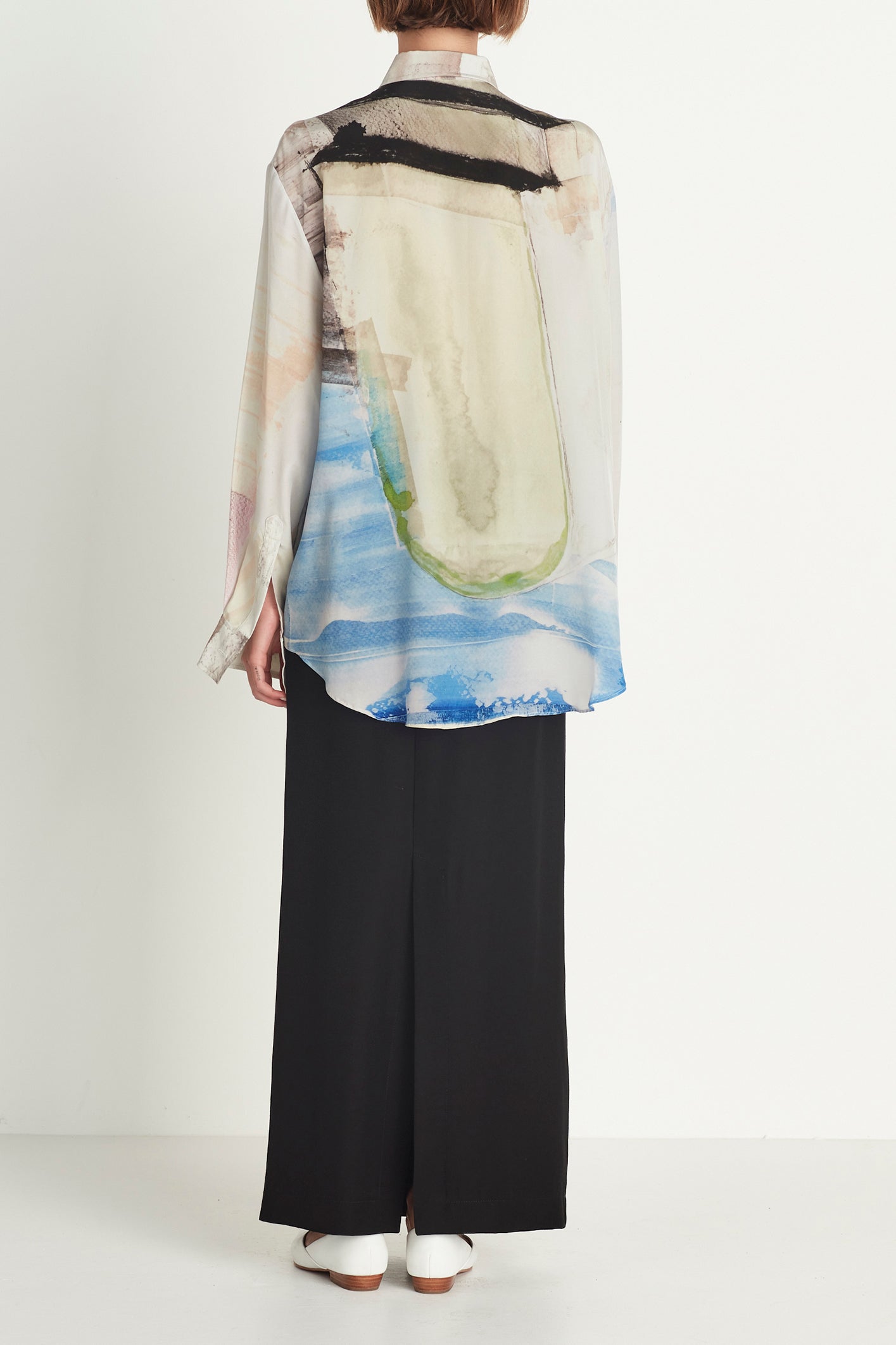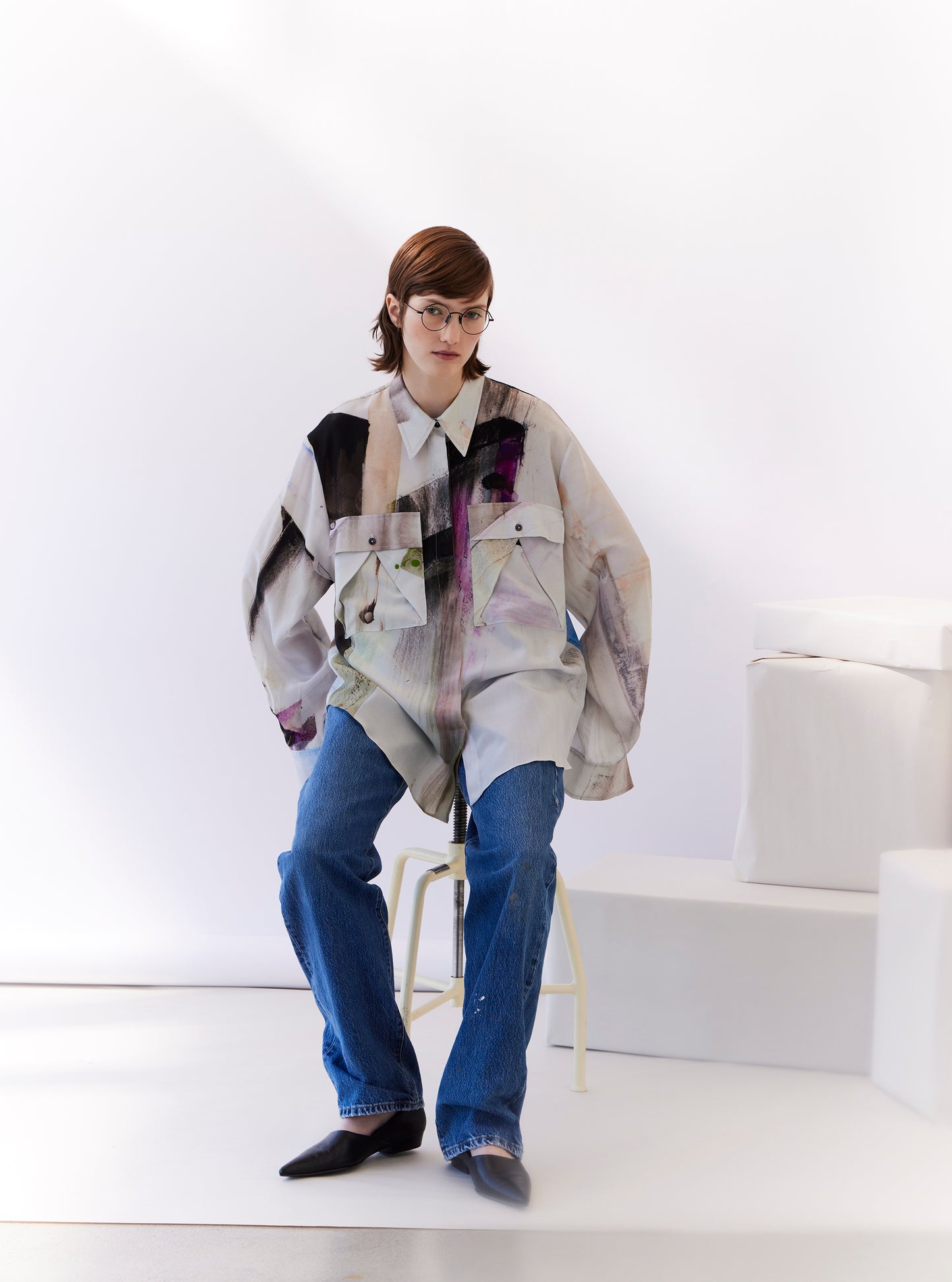Loose fitting, genderless shirt. Minimal concealed button placket.