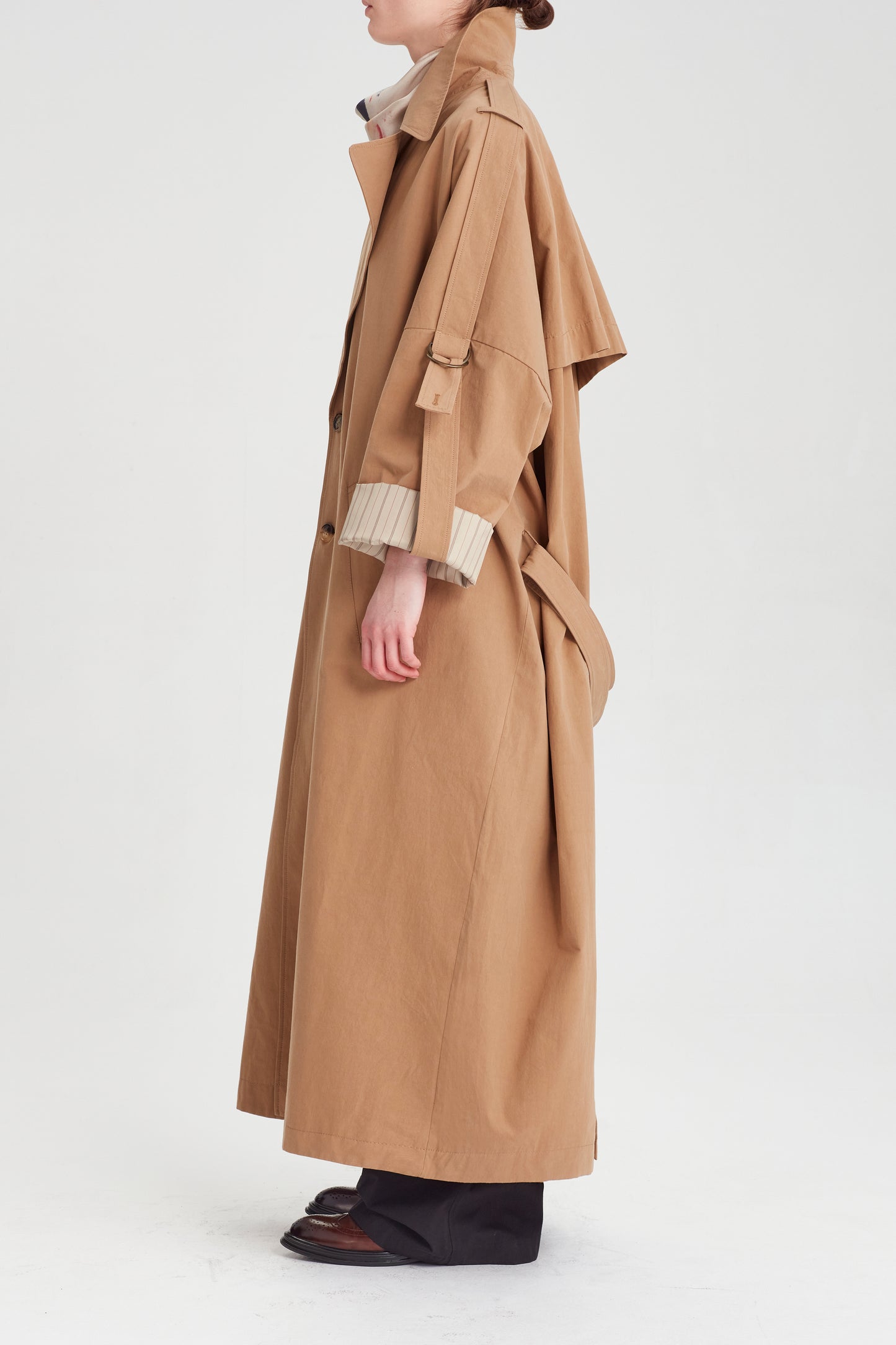 Dropped shoulder and wide sleeves, epaulettes and adjustable sleeve tabs with D rings.
