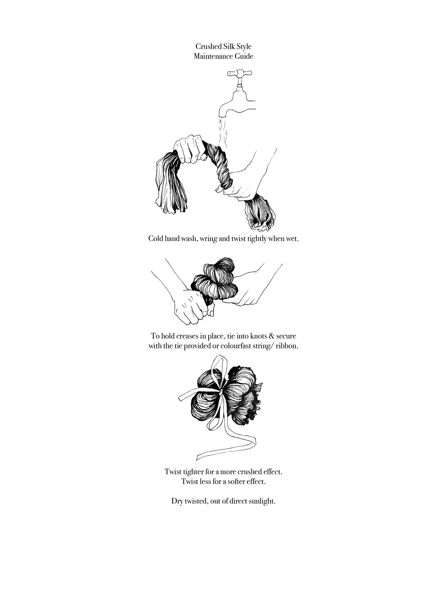 To hold creases in place, tie into knots & secure with colourfast string/ ribbon.