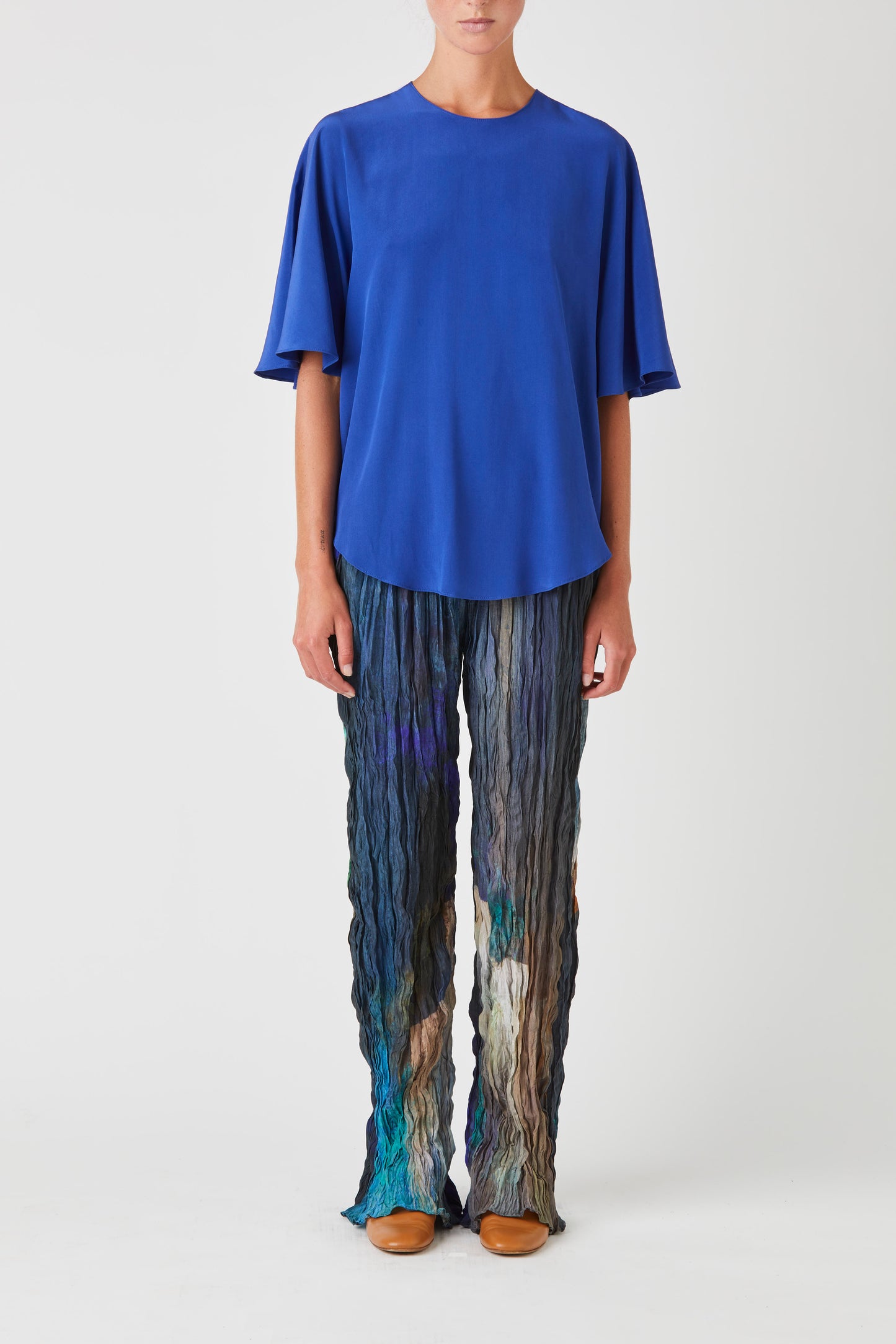 Wide leg crushed silk trouser
